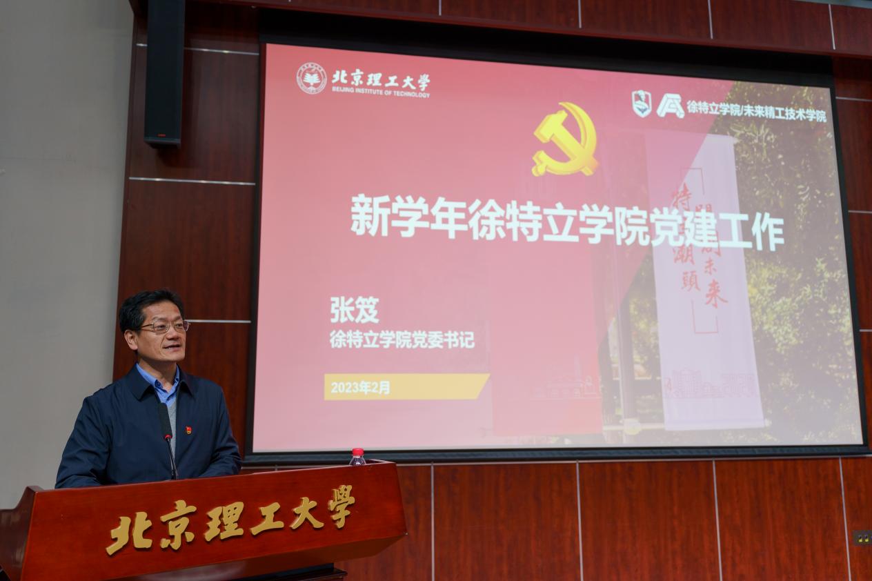 最后,张笈向全体党员同志通报了学院学习党的二十大精神、新成立党支部划分和合格党员标准的相关情况。他强调,2023年是全面贯彻落实党的二十大精神的开局之年,也是学院党建工作提质升级的关键一年,各党支部和全体党员要按照已形成的“两横三纵”党建工作格局,落实“六级联动”责任体系,发挥党员模范带头作用,在新征程上做合格党员,争做拔尖创新人才。