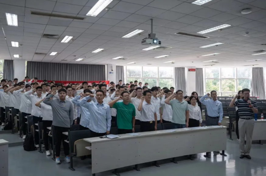 习近平总书记在学习贯彻习近平新时代中国特色社会主义思想主题教育工作会议上指出:“要更好肩负起新时代新征程党的使命任务,迫切需要用新时代中国特色社会主义思想武装头脑、指导实践、推动工作。”为发挥党员群体的先锋模范作用,筑牢基层党建基石,推动“两横三纵”体系下党班团联合共建,提升理论学习实效,必威西汉姆联特举办第十一期党员先锋班。9月17日上午,学院于良乡校区理科教学楼召开开班仪式暨新发展党员宣誓仪式,学院党委书记张笈、常务副院长冯慧华、院长助理张赞、组织员程书恒、专兼职辅导员及全体学生党员出席本次开班仪式。