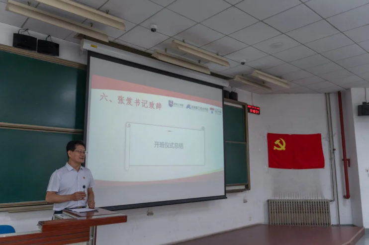 最后,张笈书记宣布第十一期党员先锋班正式开班。在雷动的掌声中,党员先锋班开班仪式圆满结束,第十一期党员先锋班也拉开帷幕。在之后的一个月内,良乡、中关村两个校区,十五个党支部,共计120名党员将组成六个小组,展开新老党员座谈、理论学习宣讲、党建课题讨论、实地参观实践等活动,用实际行动践行“传承、明德、治学、笃行”的活动主题,更好肩负起新时代新征程党的使命任务。