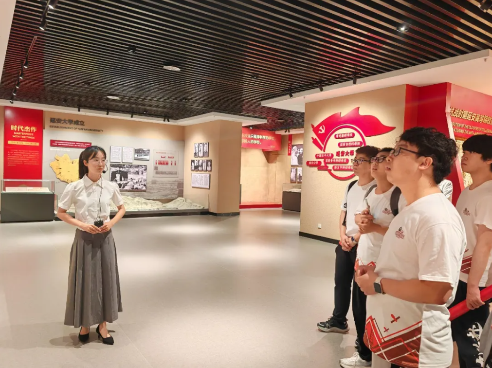 7月15日下午,成员们参观了延安大学和延安自然科学院旧址。在延安大学校史馆,实践团成员深入了解了延安大学的历史沿革和办校理念,了解到延安大学是中国共产党在延安时期创办的第一所综合性大学,在中国新民主主义革命史和中国近代高等教育史上具有特殊的政治地位和历史地位。