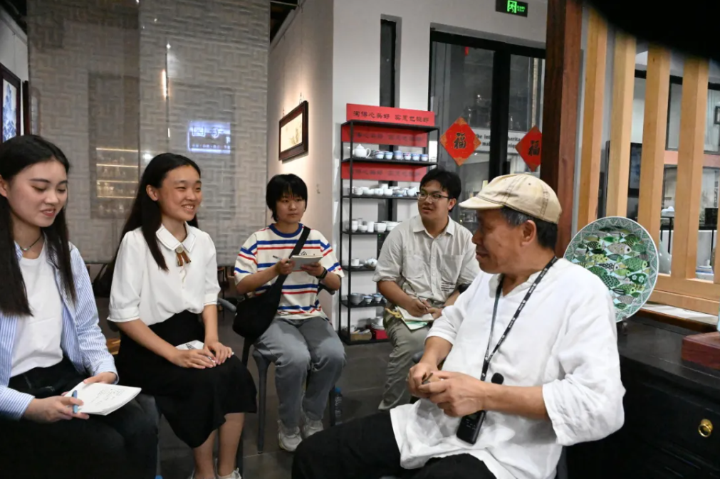 7月13日,同学们深入陶瓷企业,与产业负责人交流陶瓷产业发展与经济建设的密切关系。同学们与当地陶瓷工匠白师傅交流。白师傅详尽介绍了景德镇陶瓷发展史,分享了自身从事陶瓷工作的趣事,也让同学们学习到了地方产业发展与经济命脉和群众就业的联系。