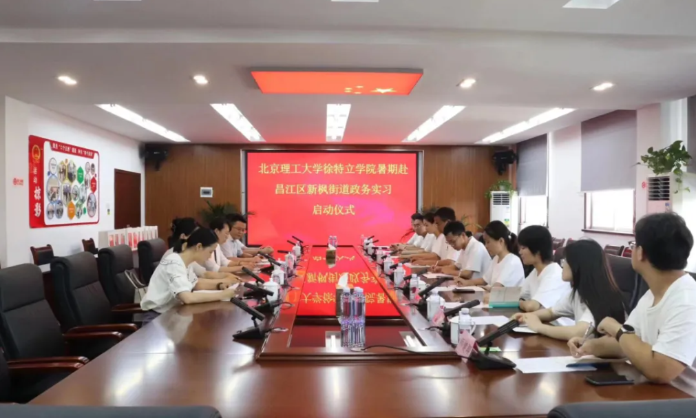 7月12日下午,实践团带队老师、政务实习团队成员于新枫街道办事处开展政务实习启动仪式。昌江区副区长张碧珍、新枫街道办事处主任范鸿与同学们亲切交流,介绍了街道概况和实习安排。