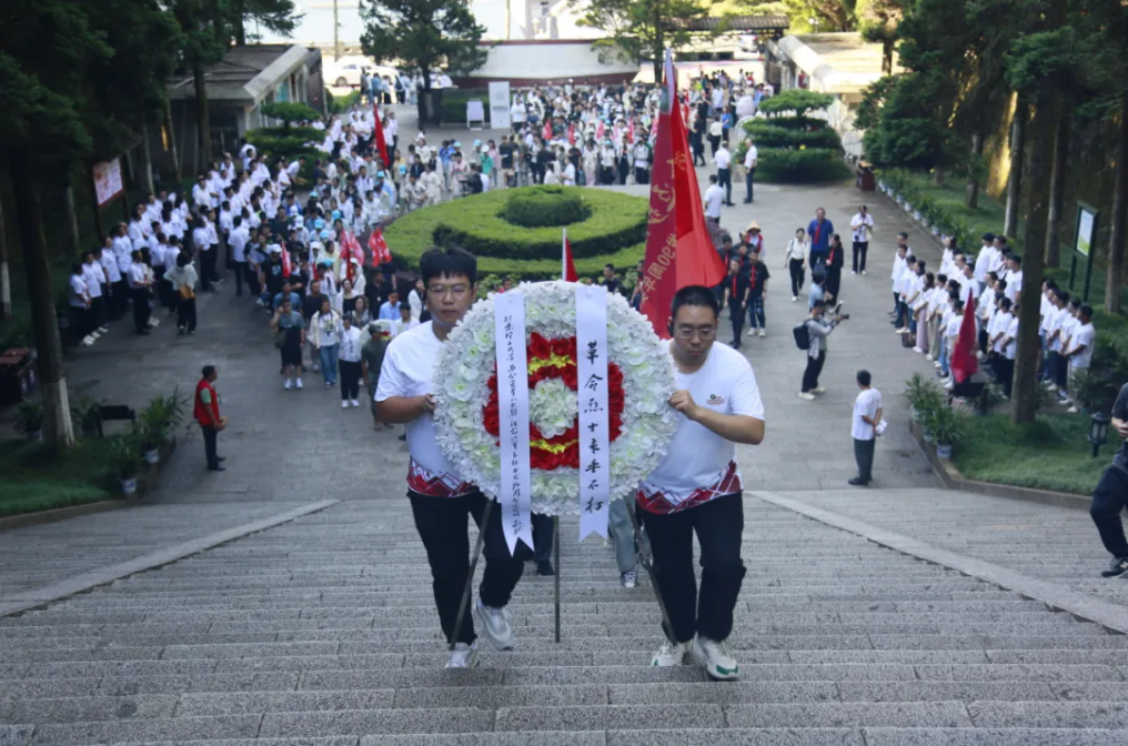 7月10日上午,实践团成员来到井冈山的最后一站——井冈山革命烈士陵园。成员们心怀崇敬,步履庄重地登上每一级台阶,向长眠于此的四万八千多名革命烈士敬献花圈,行鞠躬礼以表深切的缅怀和无限的敬仰。肃立堂前,成员们誓将初心铭记,传承井冈英烈勇于奉献的革命精神。