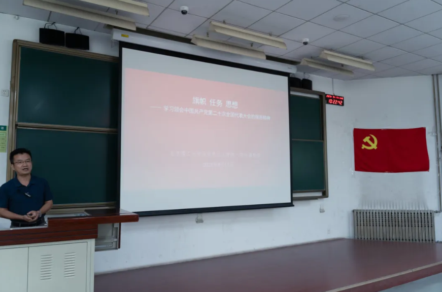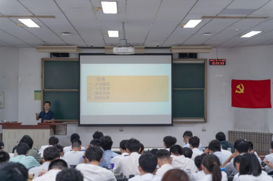 陈宗海教授讲授了名为《旗帜 任务 思想——学习领会中国共产党第二十次全国代表大会的报告精神》的开班讲座。陈宗海教授从旗帜、任务、思想三个方面,分四个部分介绍了党的二十大的概况,对一些细节问题进行了展开。陈教授带同学们回顾总结了从2012年党的十八大起的十年变革,犀利地指出了我们未来的使命任务和工作安排,解释了党的二十大提出的新论断并给出了将其与我们的学习生活相结合的方法。陈教授完整传授了中国共产党第二十次全国代表大会的报告精神,使同学们宏观把握了党的最新前进方向、伟大任务和指导思想。