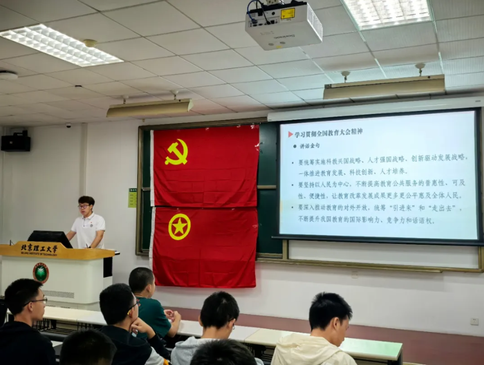第六党支部学生副书记张杰宸详细解读了全国教育大会的最新精神,全体参会人员共同学习了全国教育大会精神的主要内容,大家研读会议核心内容,深刻领会其中心思想,为接下来各党团支部内开展深入学习做好准备。随后,第六党支部书记赵陈炜为大家介绍了入党流程及相关要求,强调了入党的严肃性,明确了入党的意义及内涵,鼓励符合条件的同学积极向党组织靠拢,以实际行动践行党的精神,争取早日加入党组织。