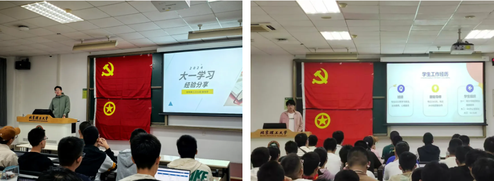 两位优秀学生党员席浩洋、周鑫受邀分享学习及学生工作经验。席浩洋结合学习经历强调了自主学习和终身学习的重要性。他建议同学们珍惜大学时光,努力夯实专业基础,积极参与各类比赛和实践活动,提升自己的综合素质和创新能力。周鑫则分享了自己的学生工作经验,他鼓励同学们要勇于实践与创新,将所学知识应用于实际工作中,为社会贡献自己的力量。