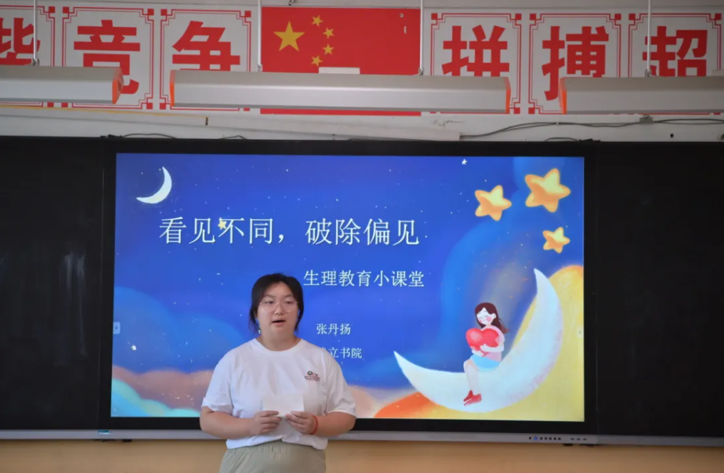 最后,段星桐和张丹扬同学为孩子们带来了一节生理教育小课堂,从人的生长发育切入,带领同学们认识男女生理结构上的不同,引导大家坦然面对生理的正常现象,学习如何预防疾病、保护自我,进而帮助同学们树立正确的性观念,拒绝偏见与束缚,拥抱别样人生。