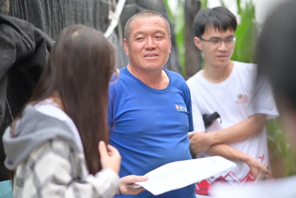 在农场负责人郭场主的带领下,实践团成员参观了蔬菜种植大棚,了解到农场采用现代化的温室大棚,可自主调节温度、湿度和光照,为作物提供最佳的生长环境;此外,大棚内配备了滴灌喷灌相结合的灌溉系统,提高了水资源利用率。农场坚持无公害生产理念,采用生物防治、物理防治等绿色防控措施,减少了化学农药使用,保障了蔬菜品质和消费者健康。