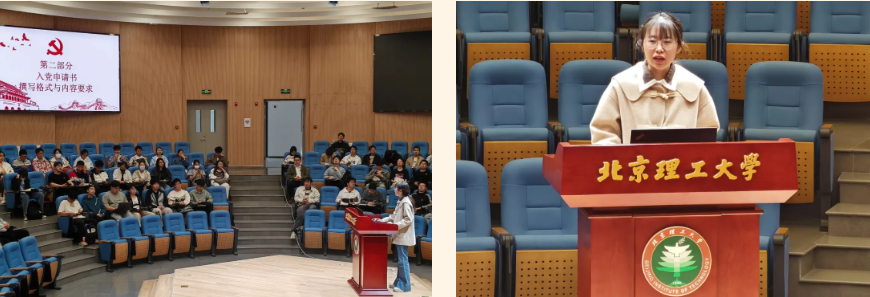 王雅欣组织员介绍了入党条件和入党流程,对入党申请书与思想汇报的撰写规范进行了细致解读,并着重强调了每个环节中的关键注意事项和培养要求,解答了积极分子们的困惑和难点,为他们顺利接收党组织考察打好基础。