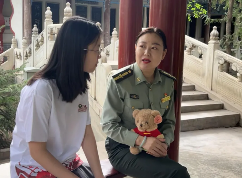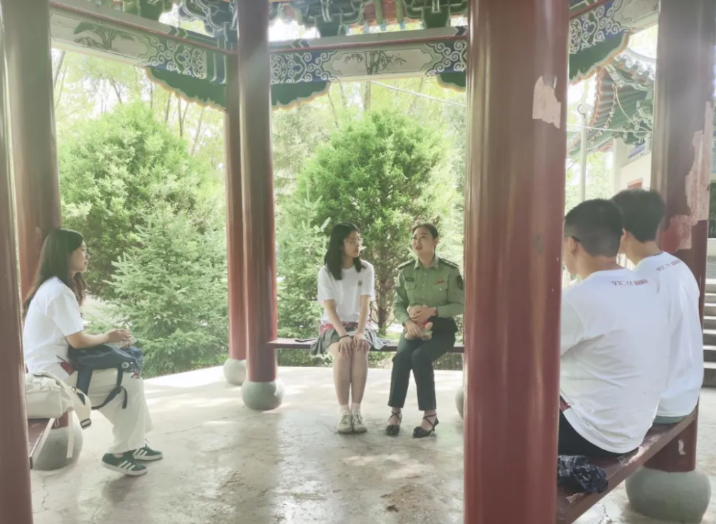 参观完会师旧址后,实践团邀请到作为“全国三八红旗集体”的红军会宁会师旧址女子讲解队队员、优秀共产党员代表孙琳同志在红军长征将帅碑林中接受访谈。