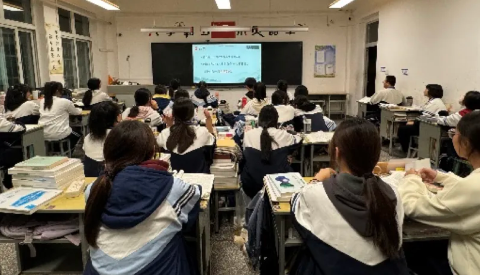 第一次分享围绕语文和数学两个重点科目展开。两位志愿者了解到普高班同学基础薄弱、方法欠缺等问题后进行针对性设计,整理归纳资料和个人经验,将典型例题融入讲解,提醒同学们要筑牢基础。此外,志愿者们还分享了时间管理方法和备考策略,并给予同学们真诚祝福与鼓励。