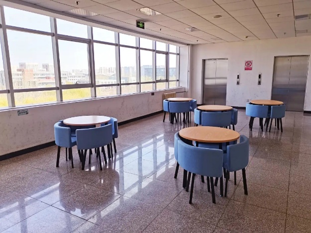 除了健身器材外,博雅楼内还新安置了供同学们自习或休闲娱乐使用的桌椅,方便同学们的同时也使楼层更加美观,让同学们在早晨出门开启紧张繁忙的学习生活时奠定一个轻松愉悦的基调。