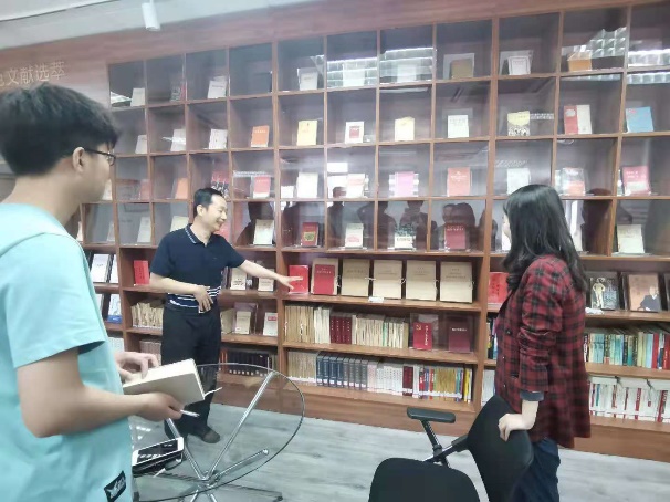 会议开始前,金军带领党员同志们参观图书馆党建工作室新设立的板块,每个板块都陈列了不同的馆藏图书,其中不乏珍贵的孤本,例如老一辈科学家的入党申请书,彭士禄院士捐赠的党史书籍等。金军还代表图书馆党总支向必威西汉姆联赠送了两套珍贵党建图书,供党员同志们交流学习使用。