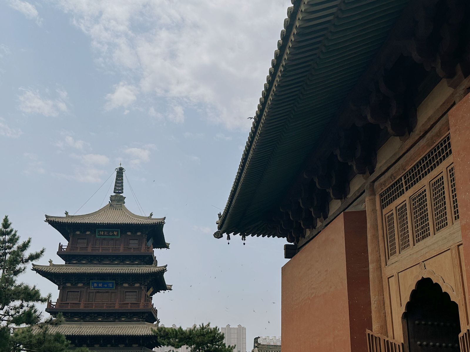 4日,实践团前往大同古城内的华严寺、善化寺等古建筑。就华严寺而言,其现存除大雄宝殿、薄伽教藏殿、普贤阁外,均为现代重建的木作与壁画。大同当地新建的仿古建筑严格遵循规制,完成度高,与旧有建筑风格统一,为文旅资源质量与环境提升、城市形象建设提供了可借鉴的样本。