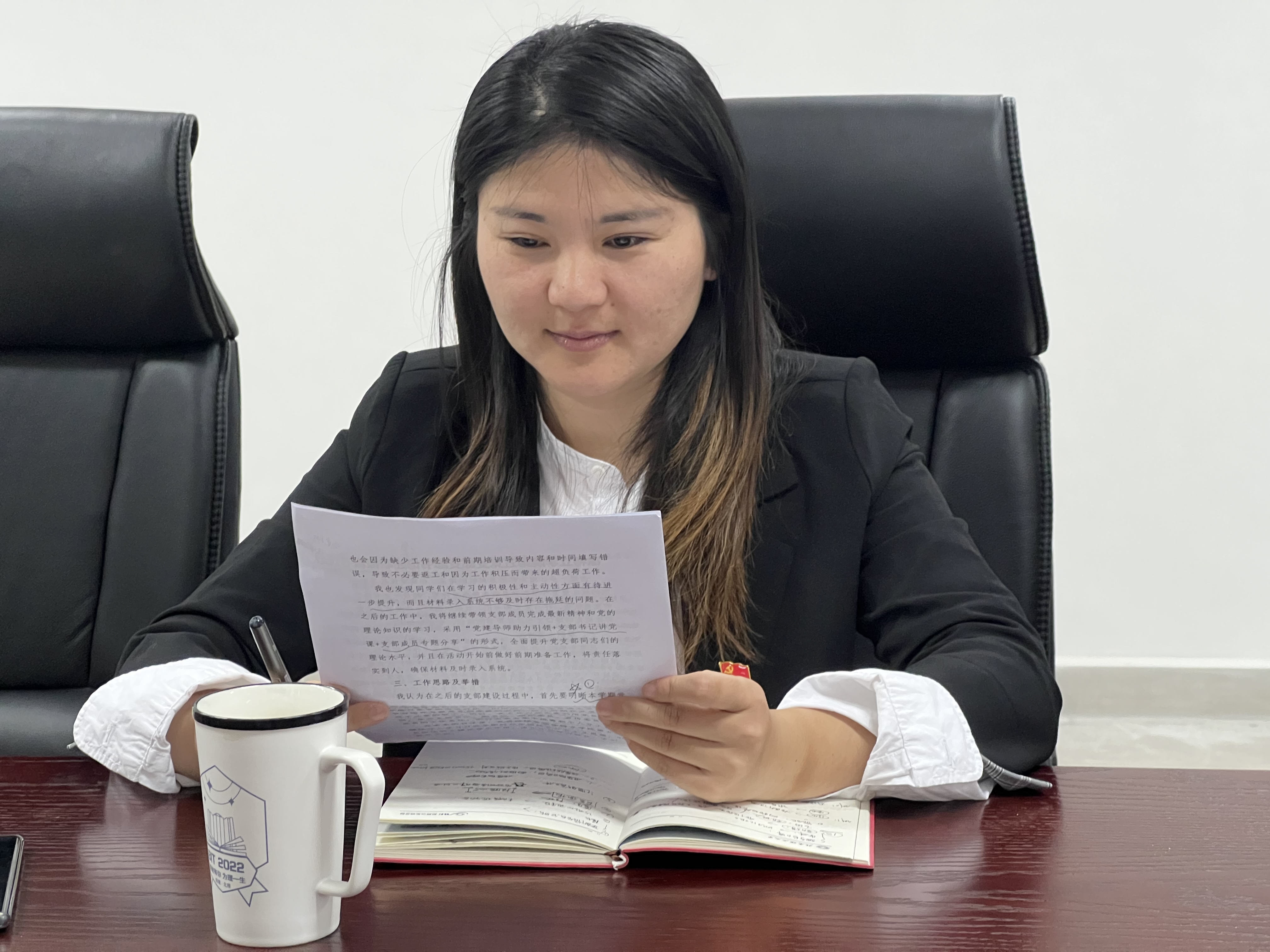 述职评议大会采取现场述职与书面述职相结合的方式,活动开始,第四、五、六党支部书记聂宁宁、杨凤芹、王铭伟先后进行了述职并结合支部特色工作展开经验分享。他们首先从上一学年支部理论学习、队伍建设、思想培养等方面的成果中凝练总结了履职主要情况和特点,指出了支部存在的理论学习主动性不高、参与活动积极性不足、培养发展党员规范性不强等问题,并提出了强化党员意识、明确分工责任、持续培养监督的下一阶段工作思路。同时,分享了实践中形成的三“力”工作法与支部红色“1+1”共建活动经验。各位书记表示,自身会努力做好党支部学习与实践的领路人,将所言付于行动,所思落于实际,努力构建思想与行动并进、奉献与荣誉交融的党支部。