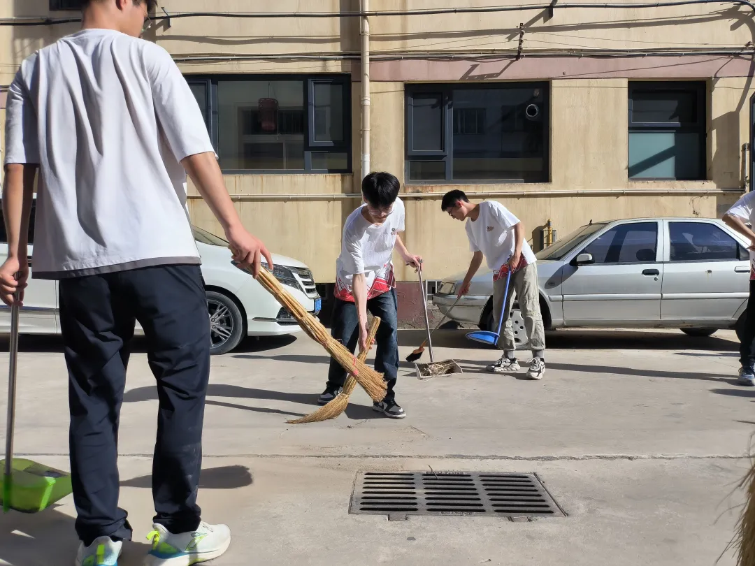 实践团成员们参与扫地劳动