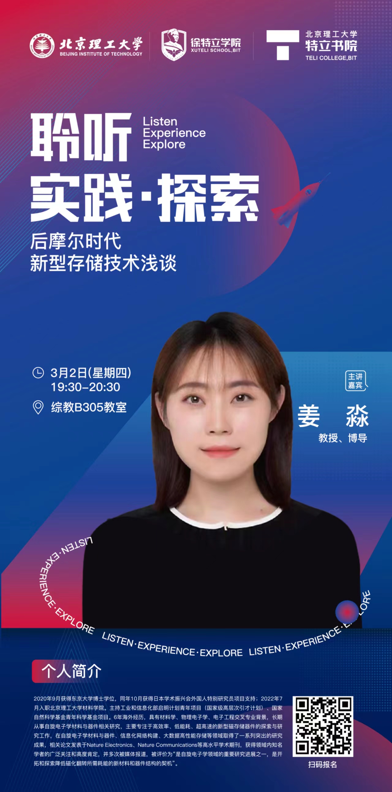 "Listen Experience Explore" Academic Salon Lecture---Brief Talk on New Storage Technology in Post-Moore Era 发布日期:2023-02-26 编辑:聂宁宁 审核:李成刚
