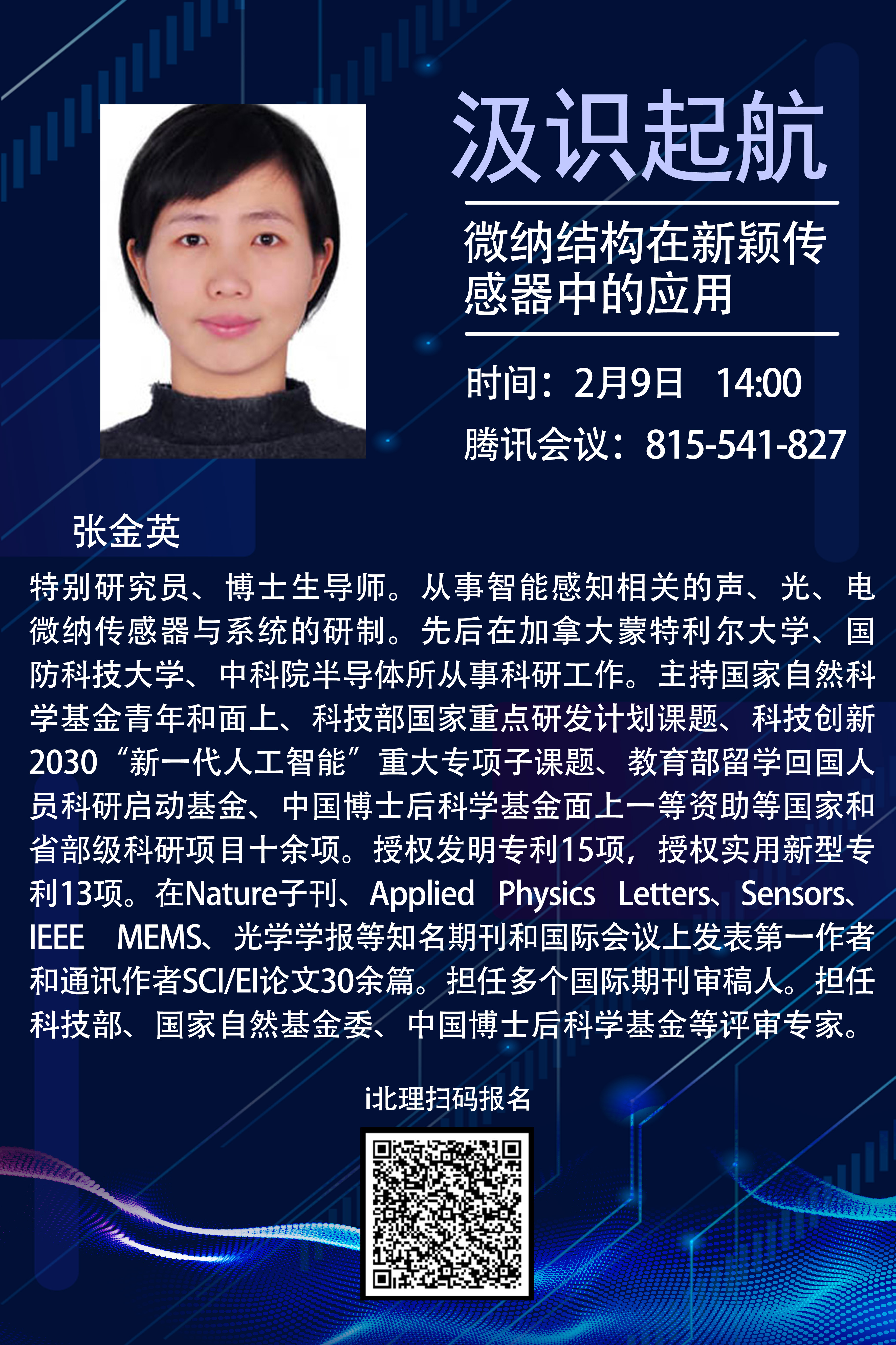 Academic Salon Lecture : Application of Micro-nano Structure in Novel Sensors 发布日期:2023-02-03 编辑:张赞 审核:赵昊