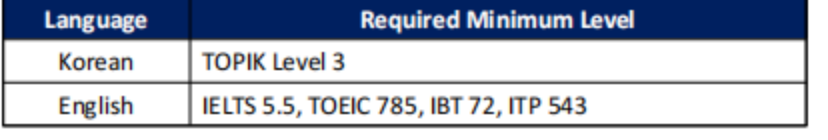 3. 英语/韩语可以作为上课语言,大学英语四级500分/大学英语六级470分或满足下述要求