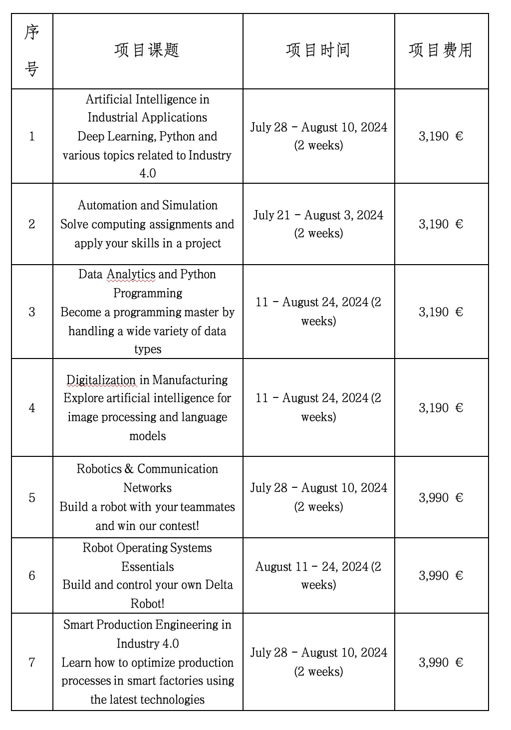 亚琛工业大学于2024年暑期开放项目如下: