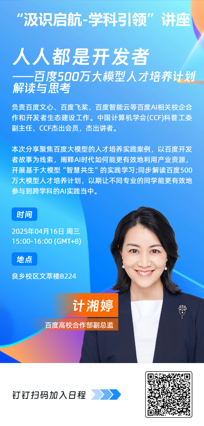 “汲识启航-学科引领”讲座——人人都是开发者:百度500万大模型人才培养计划解读与思考