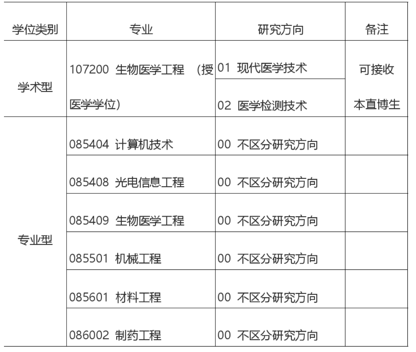 各专业接收对象须满足以下条件: