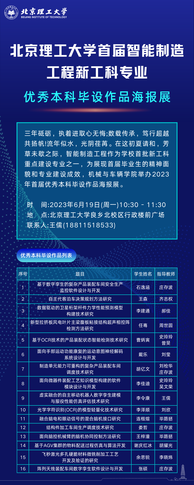 首届智能制造工程新工科专业优秀本科毕设作品海报展