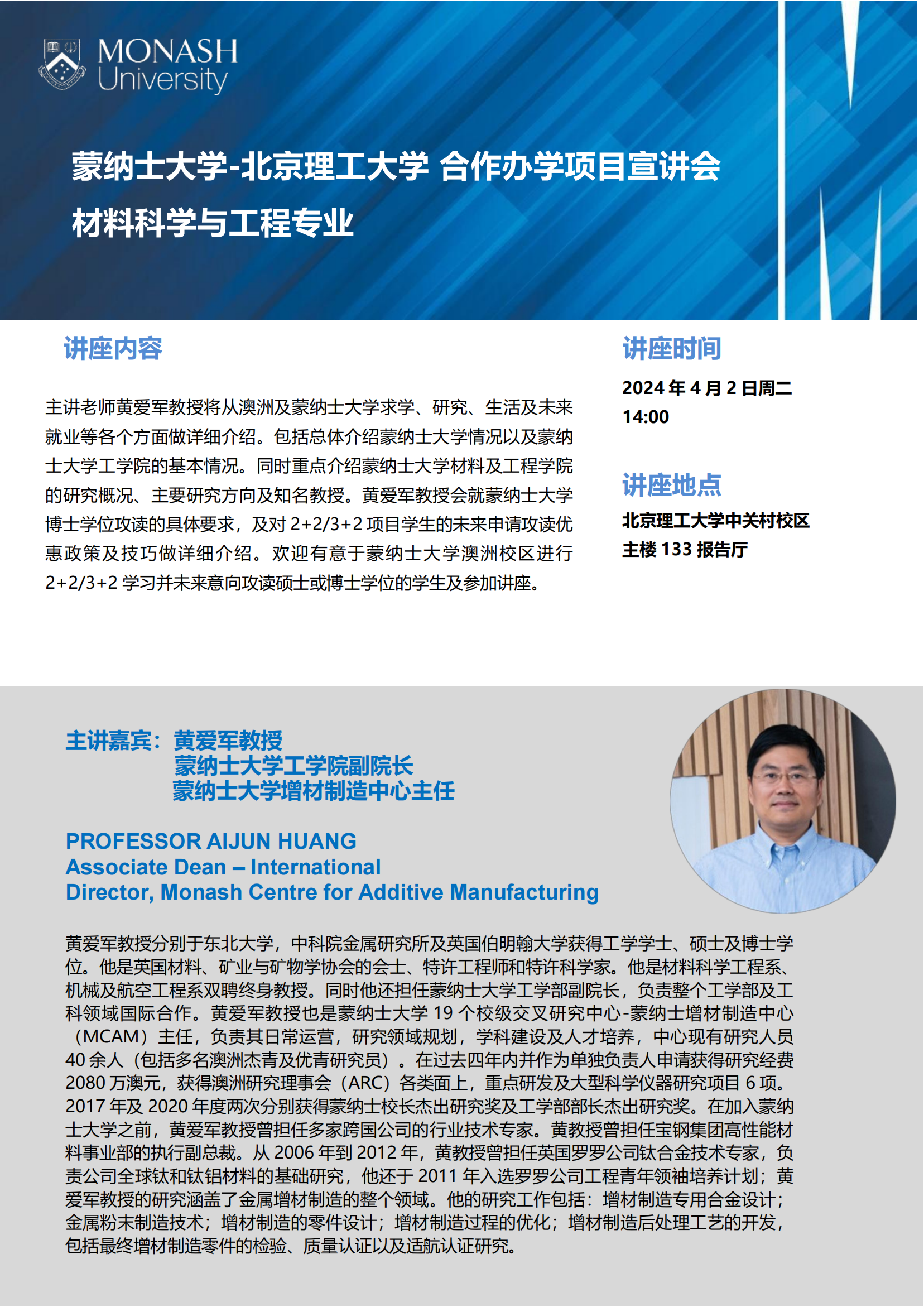 蒙纳士大学-必威西汉姆联官网合作办学项目宣讲会材料科学与工程专业
