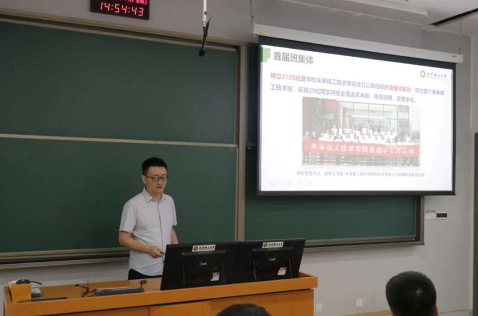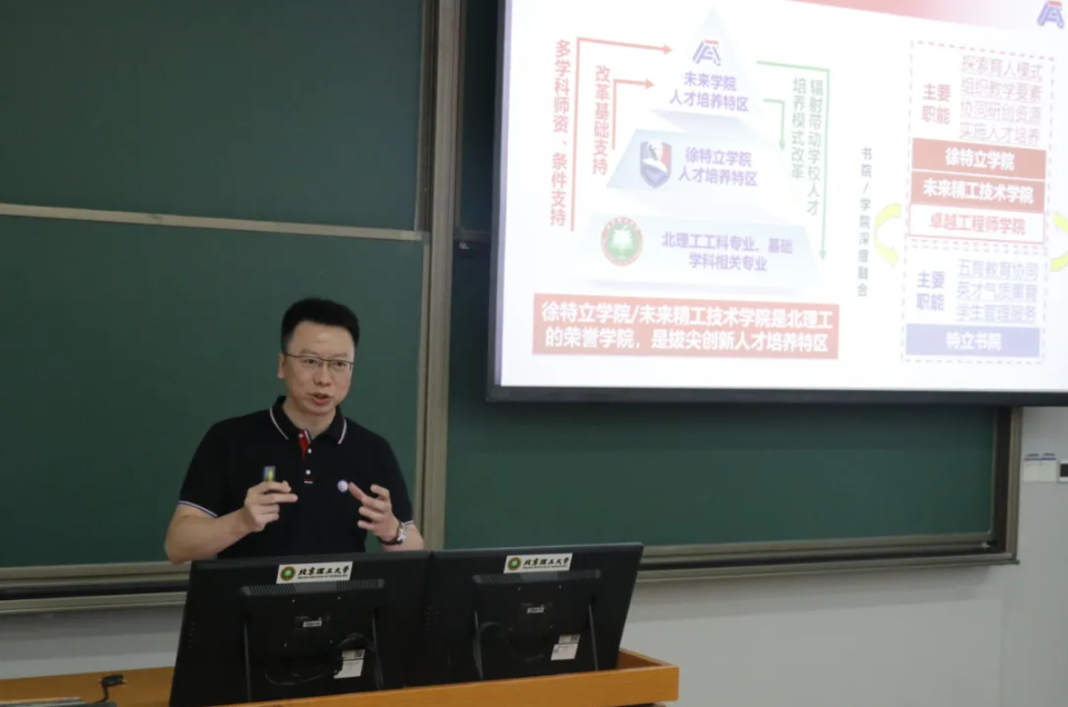 2021级首届未来精工技术班班主任、机械与车辆学院徐彬教授作为班主任代表作交流发言。特立2120未来精工技术班在今年先后获得北京市五四红旗团支部、北京市先进班集体等荣誉称号,徐彬分享了自己担任班主任的工作心得和经验。他谈到,针对新时代学生的新特点,班主任及学育导师要在引导学生树立正确观念、注重因材施教、适度帮扶指导三方面上下功夫,“成为塑造学生品格、品行、品味的大先生”。