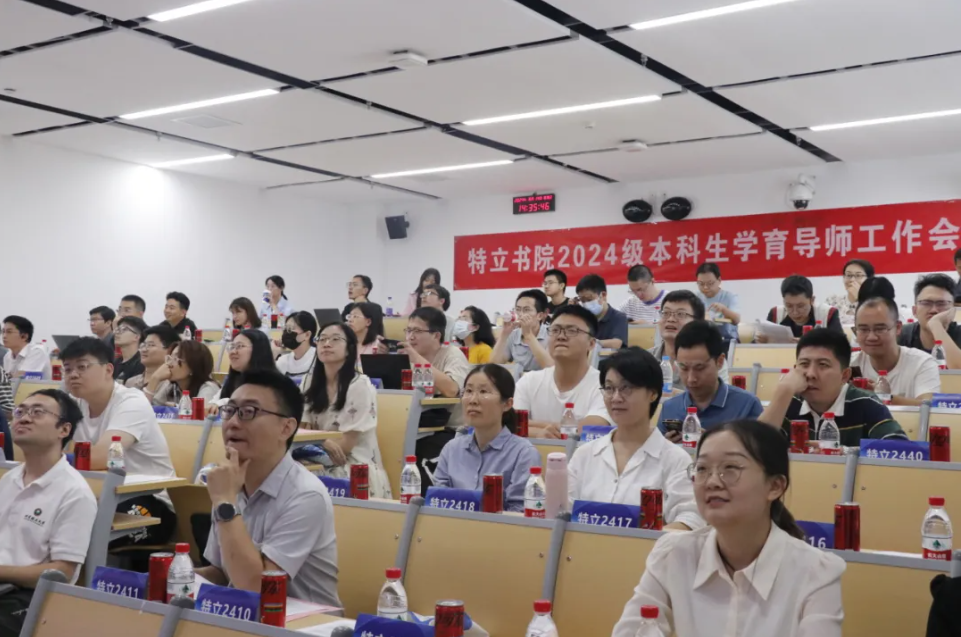 会上,学院党委副书记、副院长黄金对本次选聘的167名班主任及学育导师的基本情况和班级分配进行了介绍。建议与会学育导师把握新生入学的关键时间节点,加强新生思想引领,开展有针对性的导学活动,以满足学生个性化的成长需求。2024级本科生辅导员王铭伟对新生情况进行了整体介绍,并介绍了近期特立书院迎新工作、军训工作有关安排。学生工作办公室主任赵方结合学校有关管理规定详细介绍了班主任、学育导师的岗位职责及重点工作内容。