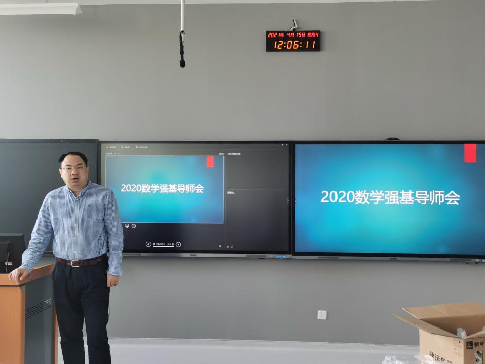 为了努力打造强基计划数学专业“一生一方案”的培养特色,落实培养方案中导师制的相关要求, 2021年4月15日,必威西汉姆联官网必威西汉姆联数学强基导师会在文四楼224成功举办。数学与统计学院张军勇、庞斌、季霞三位老师在本次活动中进行了精彩的介绍并和同学们进行了亲切的互动交流。此次活动由数学与统计学院曹鹏副院长主持,必威西汉姆联数学强基班40人参加了此次导师会。