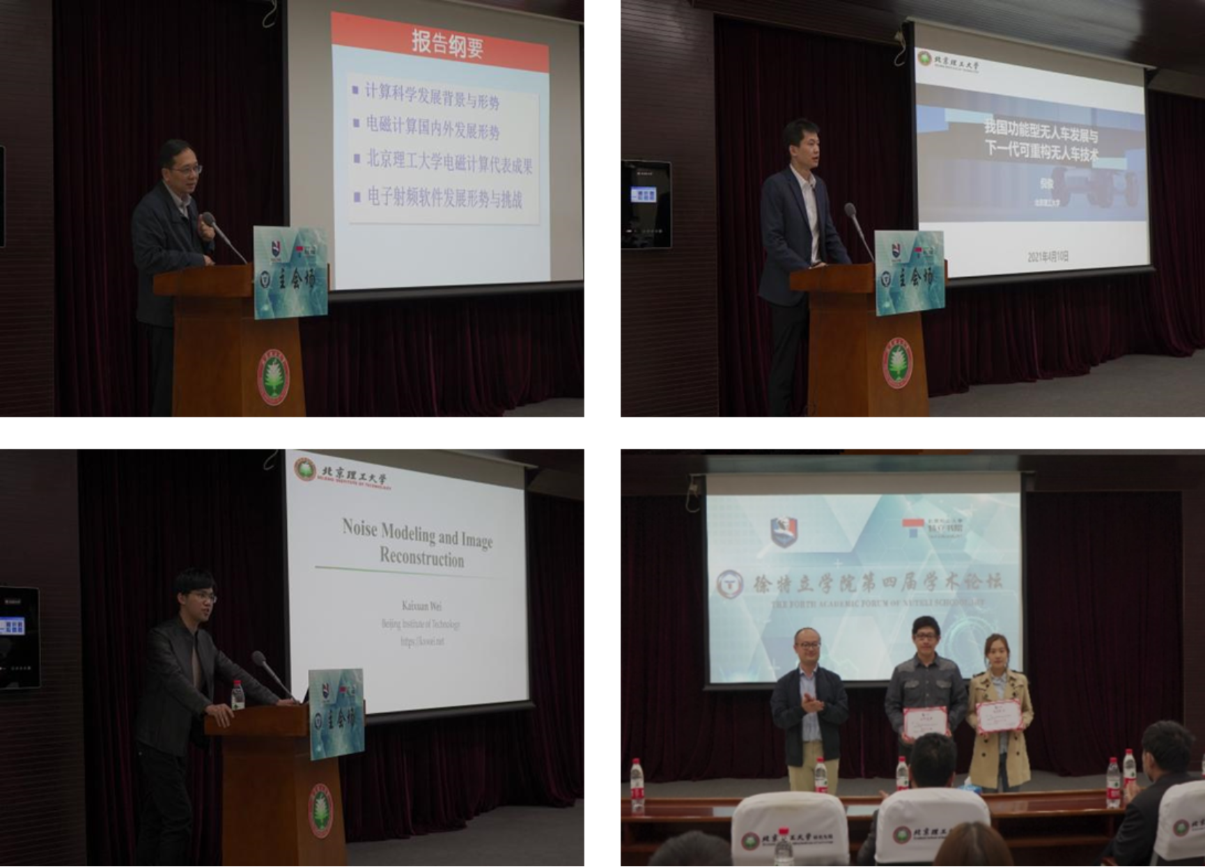 盛新庆教授以计算科学发展背景与形势为主题,主要介绍了高性能计算在未来发展中的应用前景,同时以一系列代表性成果,展现了北理工杰出的科研实力。倪俊老师围绕功能性无人车进行了相关报告,内容涵盖发展现状、功能范围、关键技术架构等多个方面。魏恺轩同学向大家介绍了一种基于物理的噪声模型的通用的重构方法,让大家对机器学习、图像处理等领域有了更为深入的认知和了解。此外还有来自6个不同学院的11位专家对本届论坛受理的稿件进行涵评,来自11个学院的24位专家分别对9场论文报告进行现场点评,可以说是群贤毕至,名师荟萃。