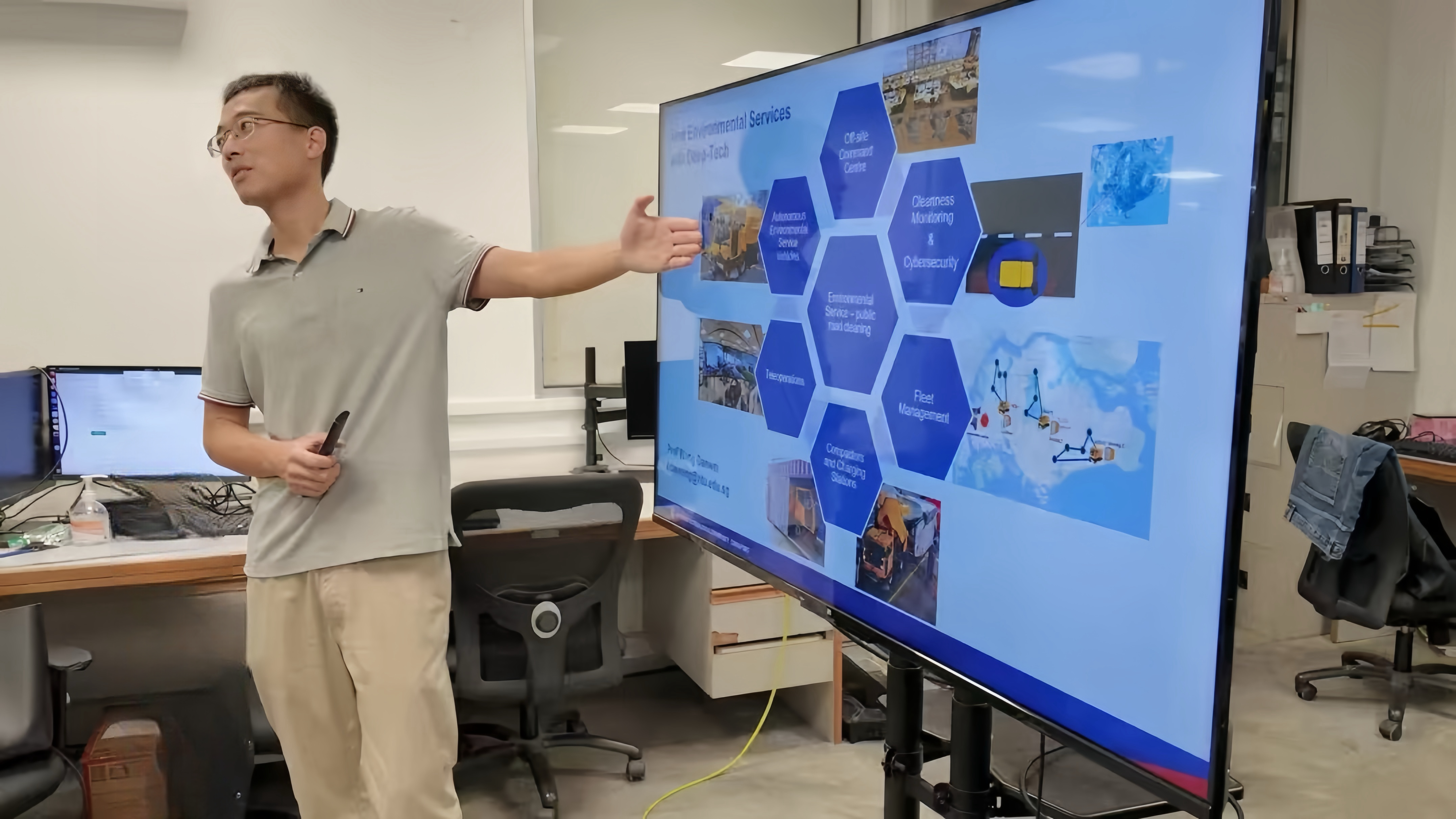 7月7日下午,学院组织同学们赴新加坡南洋理工大学机器人实验室进行了参观实践。在王元哲教授的带领下,同学们参观了许多人工驾驶与自动机器人产品,了解了远程驾驶平台、远程操控技术和多模态感知技术等实验室先进技术,对无人智能控制领域有了更加深刻的认知。