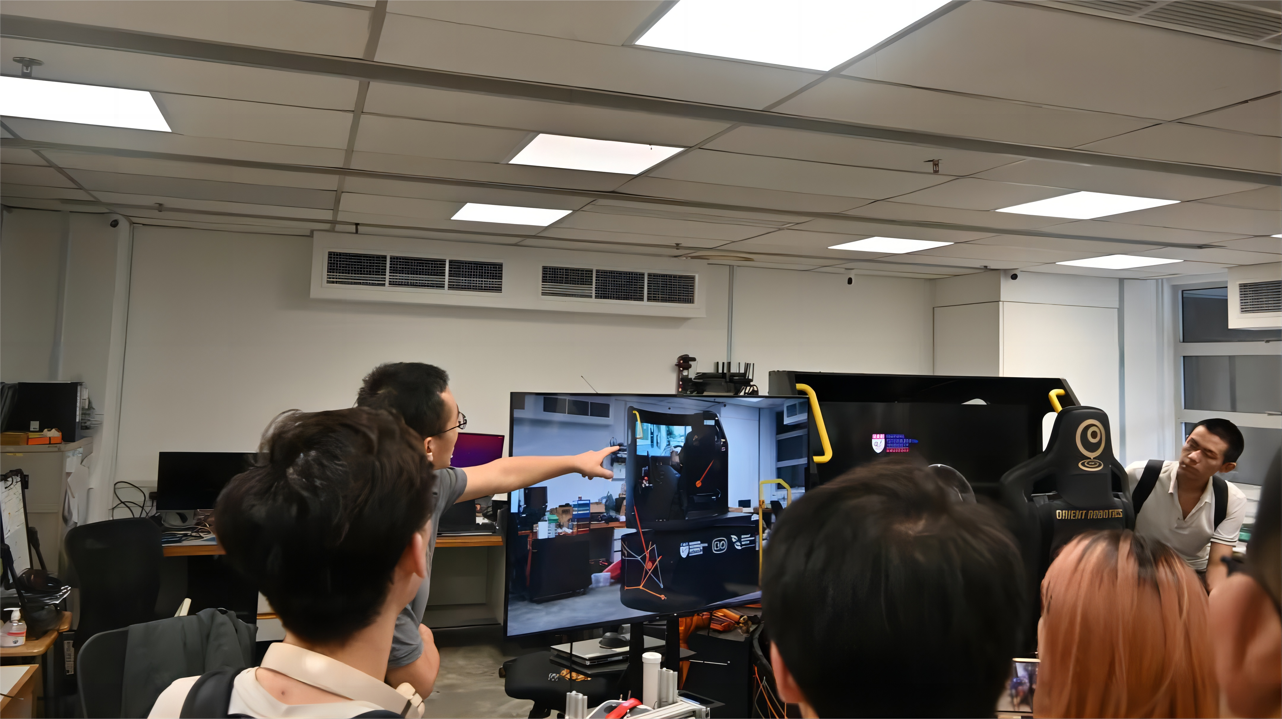 参观过程中,同学们和王教授积极交流互动,王教授耐心细致地讲解了相关技术原理,解答了同学们的诸多疑问。通过这次参观,同学们深入了解了自动驾驶技术与多模态感知技术的国际发展趋势和应用前景,并亲身体会了海外高校实验室的学术科研氛围与创新实践精神,为未来的学习和科研奠定了坚实基础。