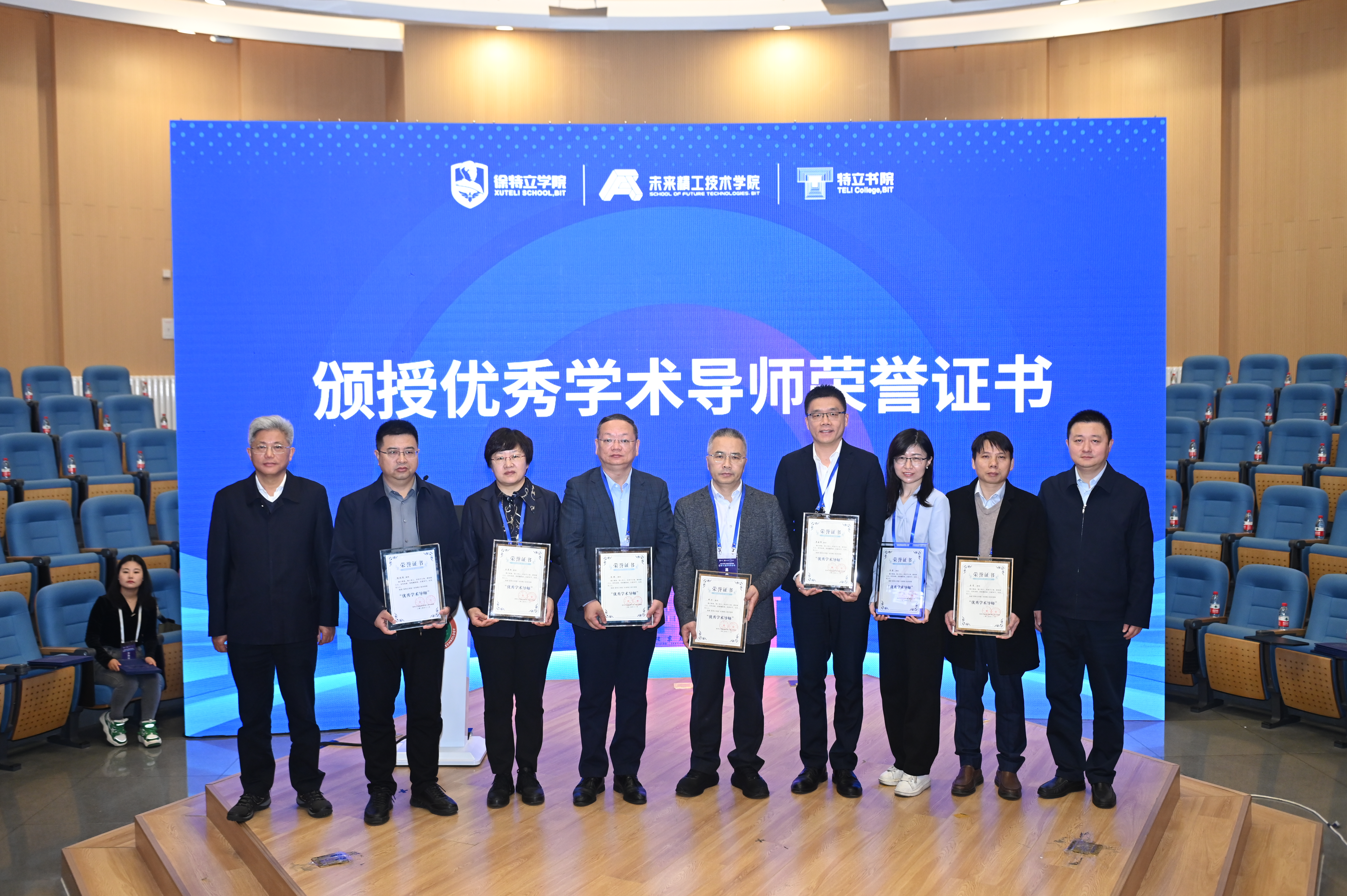 在开幕式上,杨帆、毛明向王美玲、祝烈煌、陈棋、邓方、龚建伟、付莹、石青7位教授颁发必威西汉姆联/未来精工技术学院“优秀学术导师”荣誉证书,以表彰他们长期以来倾力奉献、投身拔尖创新人才培养、悉心引领学生学术科研的付出与贡献。