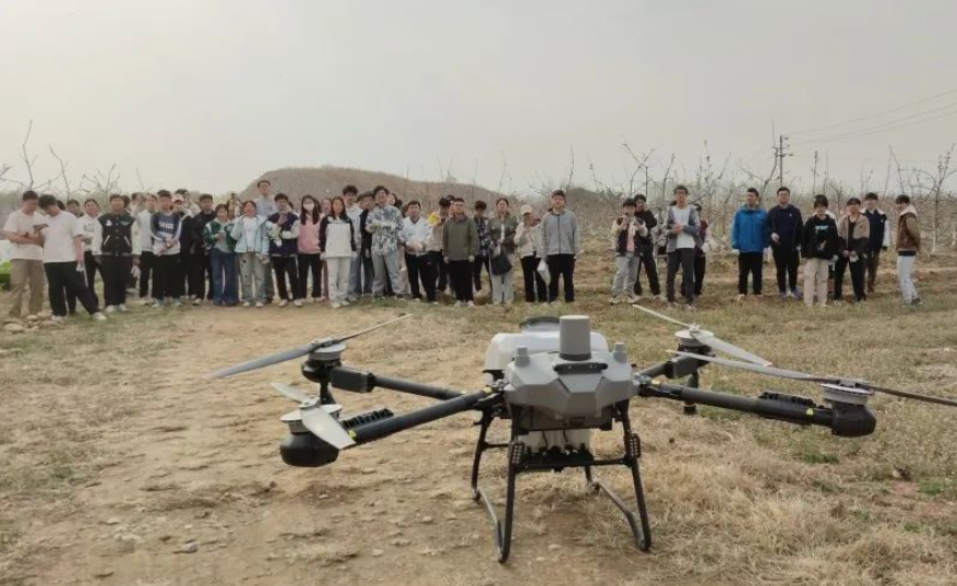 中国农业大学(涿州)教学试验场副场长李轩复向同学讲解了新质生产力推动智慧农业建设的进展与成效。 同学们现场感受自助喷洒农药机器人、植保无人机等技术装备的应用提升了大田作物的机械化率,有效避免了传统高温条件下作业人员中暑中毒的风险,同时也提高了生产效率。