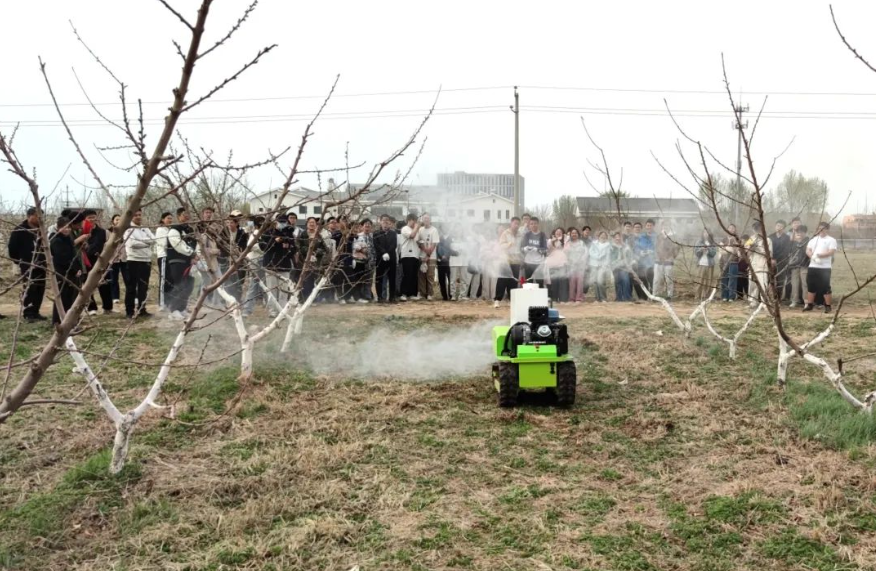 在技术老师的指导下,学生现场学习体验了自助喷洒农药机器人、植保无人机的操作,并围绕农业机器人研发中存在的主要难点、技术发展趋势进行了交流讨论。
