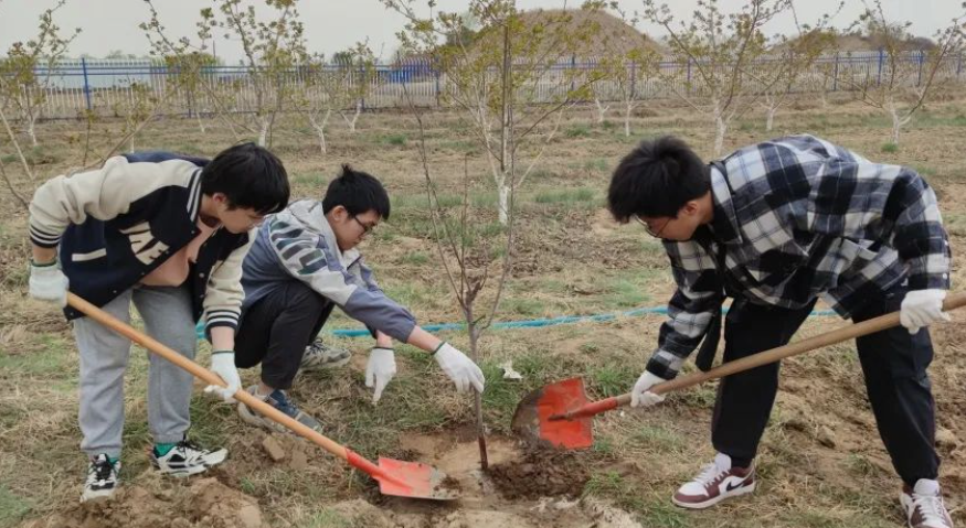 在植树现场,学生共同回顾了习近平总书记多次参加义务植树活动时的重要讲话精神,表示将在劳动实践中锻炼身体、锤炼意志、增长知识,努力做到德智体全面发展,争当领军人才,用劳动创造美好未来。