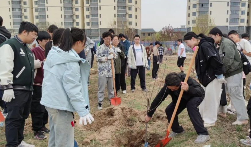时近清明,春和景明,惠风和畅。下午2时许,师生集体乘车来到中国农业大学(涿州)试验场,一同参加义务植树。在聆听了耕读实践相关现场教学后,同学们纷纷拿起铁锹走向植树点,铲土造坑、培土围堰、提水浇灌......现场一片热烈。