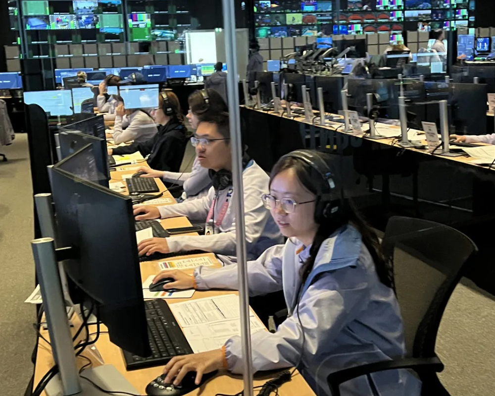 同学们在档案管理、评论员服务和技术维护等多个关键岗位上发挥重要作用。档案管理工作中,他们精准细致,确保了每一场比赛的记录和资料都得到妥善保存,为赛事的后续工作提供了坚实的数据支持;评论员服务岗位上,他们默契配合,与国际团队紧密协作,为评论员提供准确及时的信息,帮助全球观众更好地理解赛事动态;技术运行维护方面,他们以优秀的技术能力解决各种突发问题,确保了奥运会转播过程的稳定流畅,让世界各地的观众能够身临其境地体验奥运精彩瞬间。