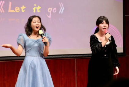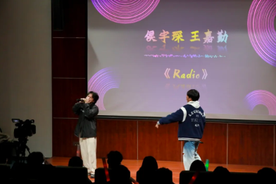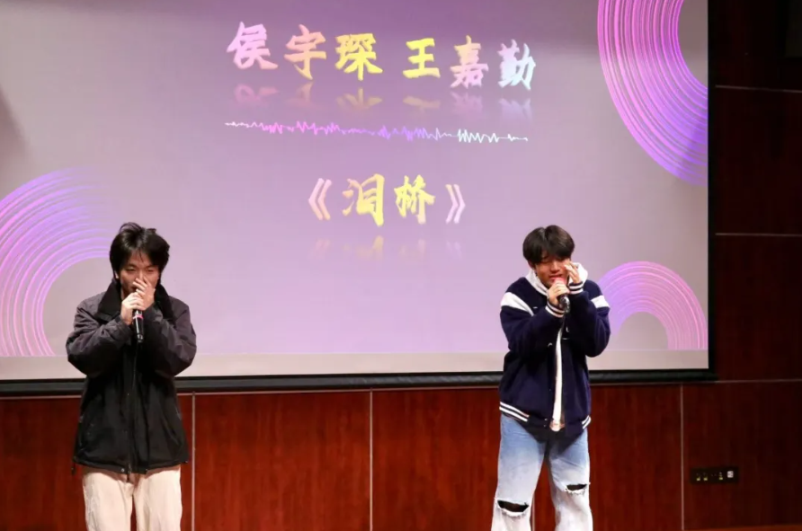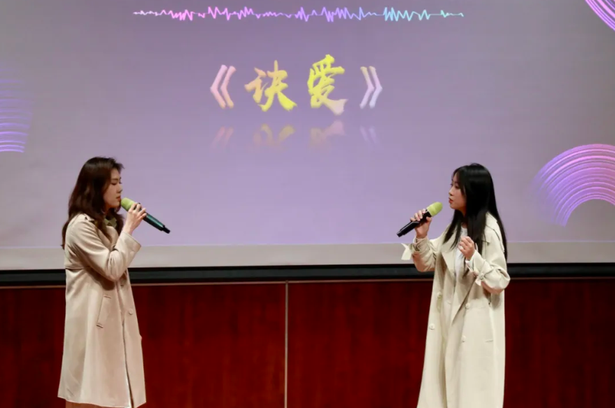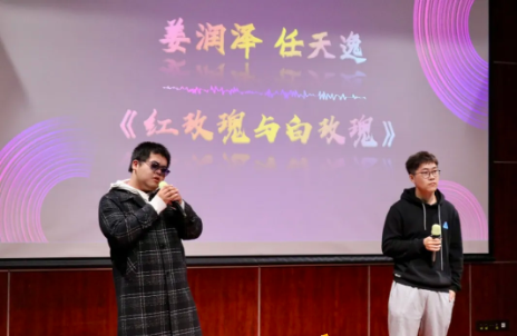 我时时望向遥不可及的地方,却常常忘记近在咫尺的陪伴。两位同学的演唱告诉我们爱情是时间一路向前,你却总在我的左右,每一个音符都饱蘸着真挚的浓情,每一句歌词均渗透着浓郁的爱恋。
