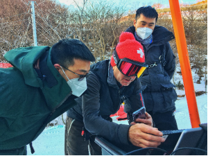 国家高山滑雪中心位于北京市延庆区西北部小海坨山南麓,设3条竞赛雪道、4条训练雪道以及其他联系雪道和技术雪道,各类雪道总长度约为23.1千米,最大垂直落差约925米,场馆规模大,技术和气象条件非常复杂。要在这样的条件下进行无人机的拍摄工作,不是一项简单的任务。并且,由于无人机团队是一个相对独立的团队,直接与场馆的制作团队和管理团队进行对接,因此需要大量的沟通协调工作,而团队内部又分为负责设备支持的法方团队和负责具体飞行的中方飞手,双方语言不通,面临的挑战着实不小。