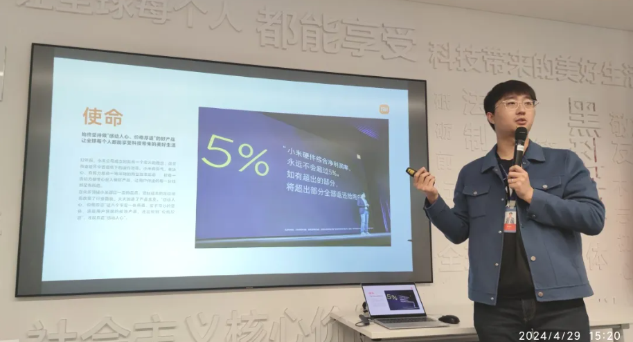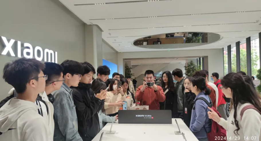 未来精工2023级本科生马艺萌谈到, "在今天的小米参观体验中,我有幸近距离看到了小米的多个产品展区,包括最新发布的汽车、手机、智能家居等,小米生态链每一种产品的功能都让我大受震撼,清晰光感的手机摄像,内置冰箱侧面音响的大厅茶几,连接所有家电的小爱音箱…每一样产品的设计都有所巧思,汇聚着工业设计的创意,这次交流太值得了!”。