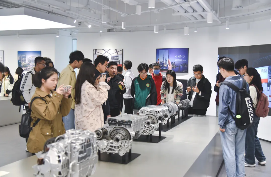 学生与工程师交流小米SU7发动机创新设计