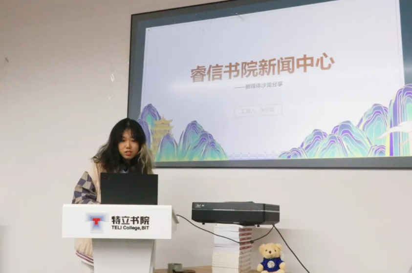 睿信书院新闻中心代表张欣延分享了新闻中心的主要工作,包括内容创作、信息传播和活动策划。然后,她重点介绍了公众号的运营情况,内容分为新闻栏目、思政栏目和特色栏目。其中特色栏目尤为丰富多彩,“京遇”展示京城的人文风情;“睿小漫的镜像宇宙”通过漫画展现同学们的创意;“看见。摄影大赛”则鼓励同学们用摄影表达自我。分享内容激发了其他新媒体工作者的创意,提供了实用的经验和方法,帮助大家更好地策划和实施各类活动。