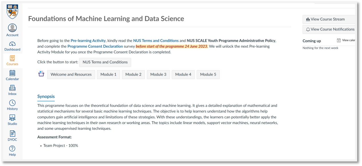 新加坡国立大学将在其在线学习平台Canvas上为学员建立个人账户。每位学员都将使用自己的Canvas账户接收学校通知、访问讲师分配的学习任务、提交作业和下载课程资料。