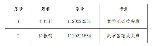2022级数学基础拔尖班选拔结果公示