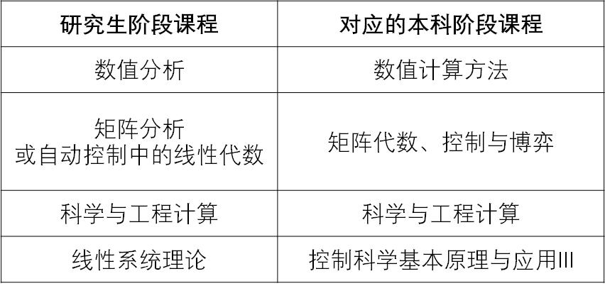 研究生阶段和本科阶段课程对应关系如下: