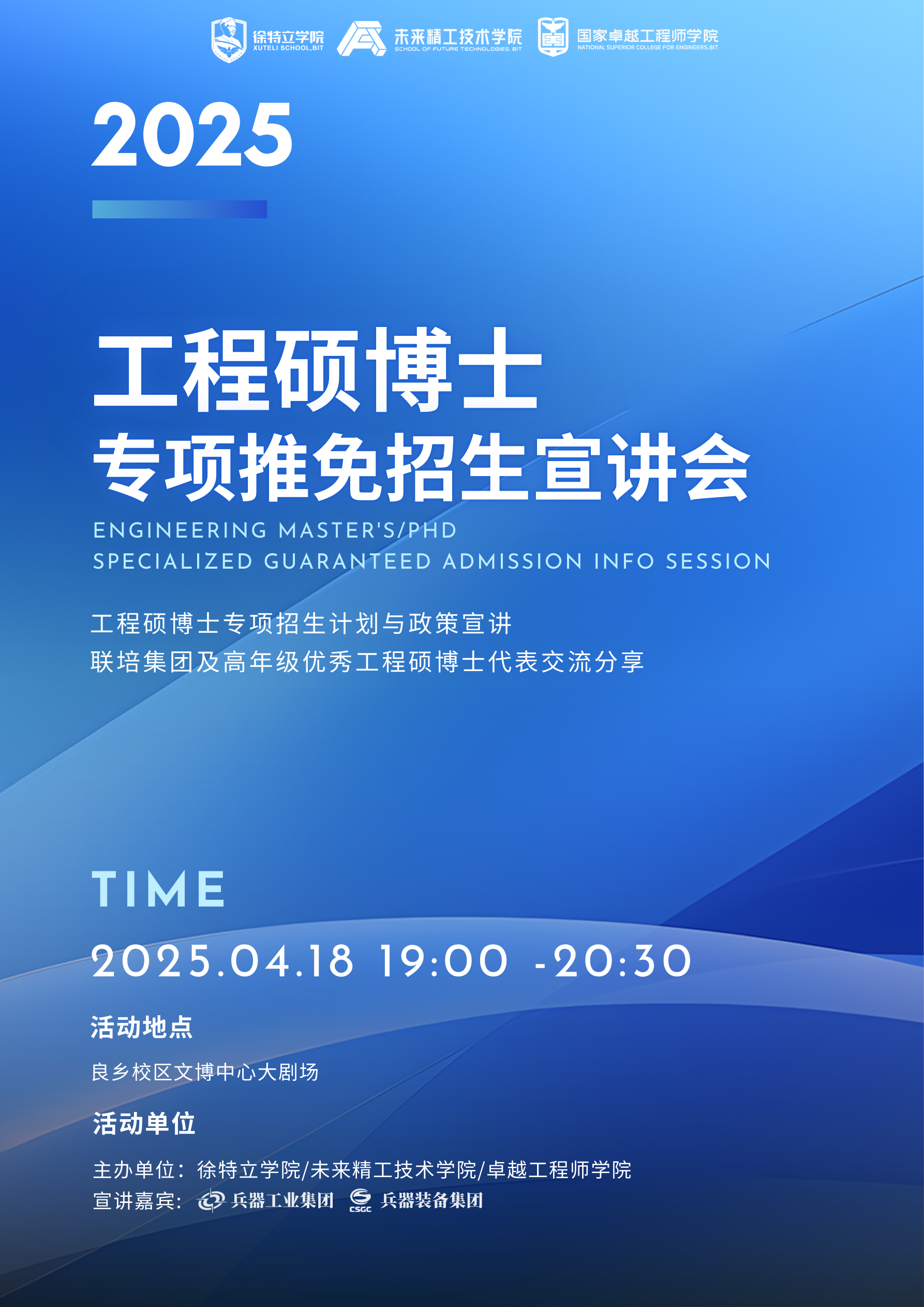 工程硕博士专项是由国家多部委联合推动的面向国家急需领域以校企联合方式开展的卓越工程人才培养项目,旨在培养具有解决复杂工程技术问题能力、善于开展工程技术创新实践的高层次领军人才。目前,我校已累计招收四届工程硕博士共1214人,与190多家行业领军企业及科研院所开展联合培养,招生规模稳居全国高校前列。由于工程硕博士专项只招收推免生,为了让我校更多大三学生了解2026级工程硕博士专项招生政策和培养模式,卓越工程师学院定于4月18日举办专题宣讲会。