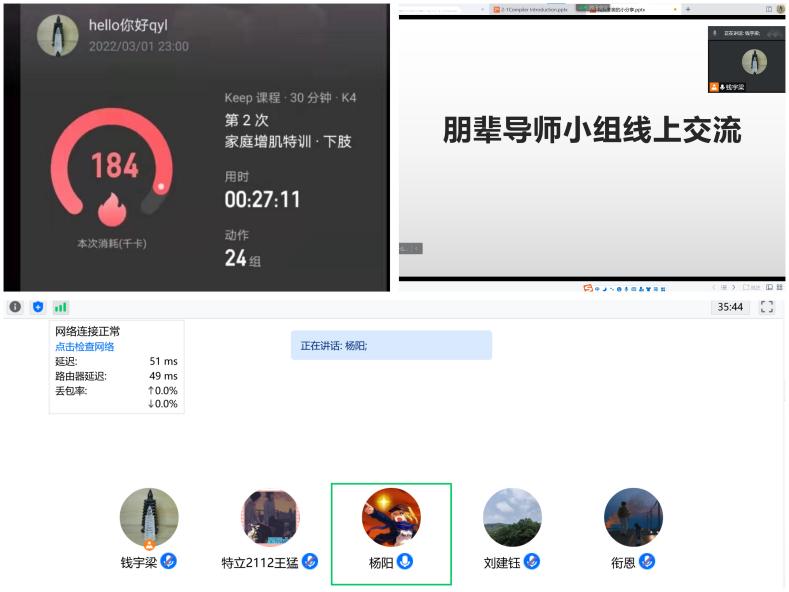 隔离期间,钱宇梁认真参与线上学习,规划好自己的每日时间表并严格执行;坚持每天锻炼半个小时以上,保持健康的身心状态;克服困难和不便,线上完成学生会和党支部的各项学生工作。此外,钱宇梁还作为朋辈导师与21级同学开展交流活动,向他们介绍自己的冬奥经历,解答他们学习和生活上的疑惑。